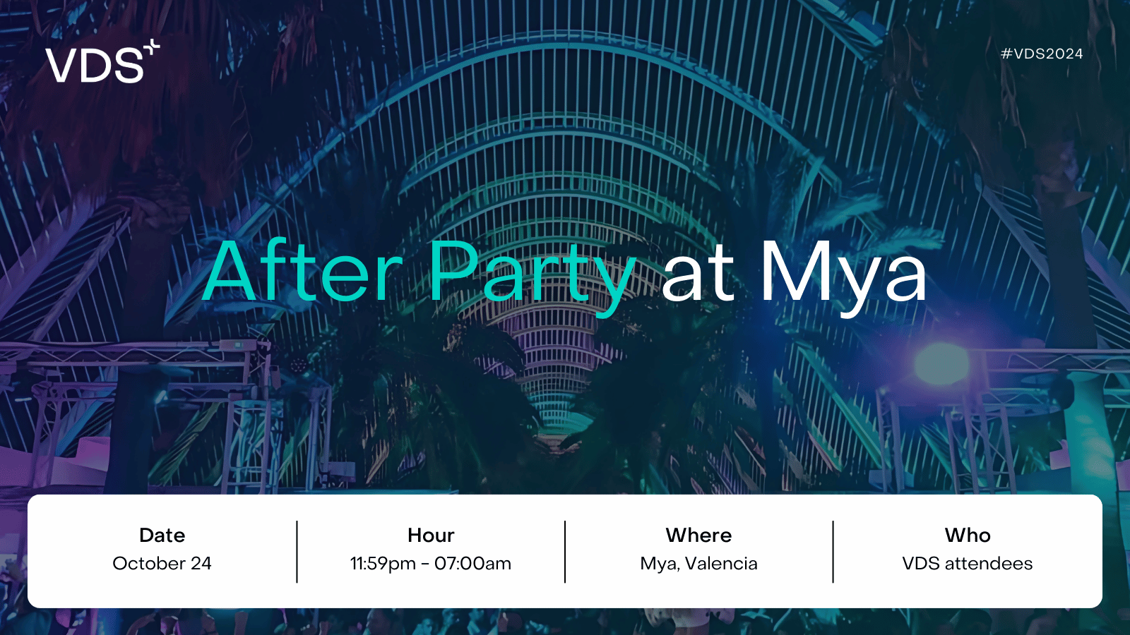 Join us for the exclusive Afterparty at Mya, the perfect way to end VDS! Enjoy the night with a special €10 discount, making it just €15 with a drink included. Don’t miss out on this unforgettable celebration!