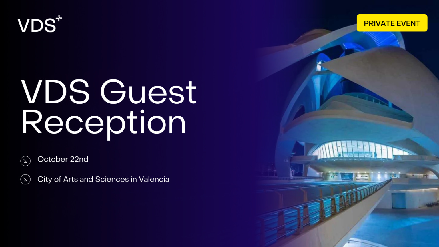 The VDS Guest Reception will take place at the stunning Palau de les Arts in the City of Arts and Sciences. This is an opportunity to connect with speakers, sponsors, and Startup Valencia partners.