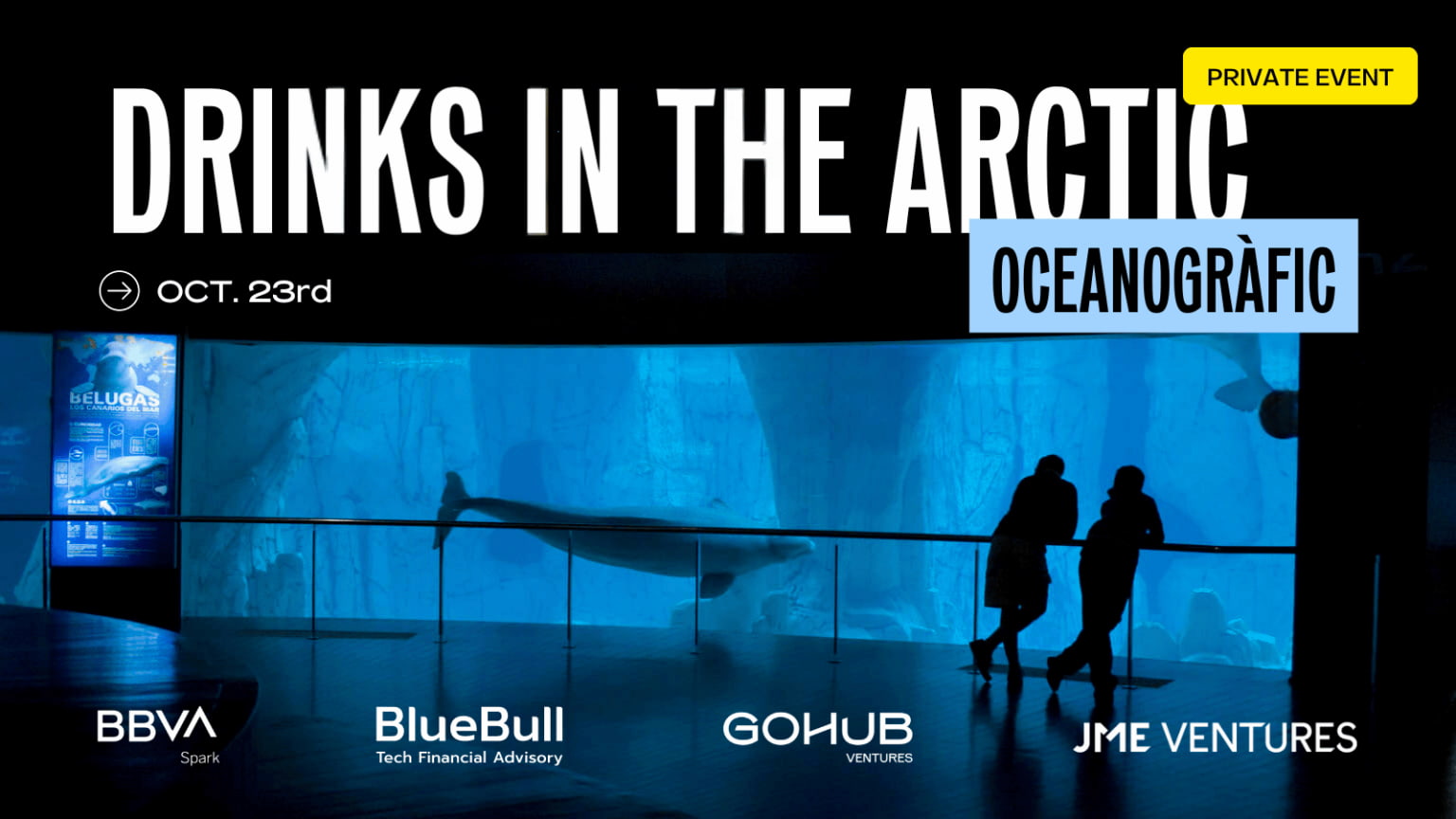 BBVA Spark, BlueBull, GoHub Ventures, and JME Ventures are co-hosting an exclusive VDS2024 side event for investment professionals. Network in The Oceanogràfic of Valencia with a curated community of investors and enjoy some cocktail drinks surrounded by two incredibly friendly belugas.